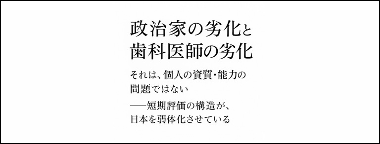 政治も歯科医療も、短期評価でしか測れない構造を変えない限り、再生はない。